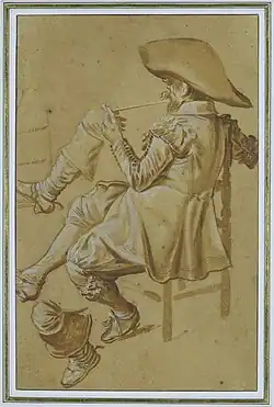 Мужчины курят и играют в нарды в таверне. 1627. Дерево, масло. Частное собрание