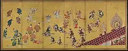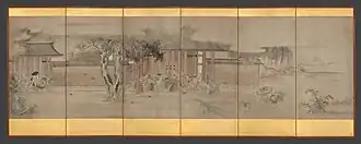 Ханабуса Иттё (яп. 英 一蝶, 1652—1724); имя при рождении — Тага Синко — японский художник, каллиграфист и поэт. Изначально Ханабуса Иттё обучался живописи в школе Кано у мастера Кано Ясунобу, но в итоге полностью отверг этот стиль и стал последователем школы Нанга и так называемой бундзинга (яп. 文人画, «живопись учёных») и экспериментировал с изображениями сцен из повседневной жизни людей[3]. Также использовал псевдонимы Тага Тёко, Хисикава Вао и несколько других.