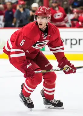 На драфте НХЛ 2015 года рассматривался в тройке фаворитов и как лучший доступный защитник. В результате был выбран под общим 5-м номером командой «Каролина Харрикейнз». Сразу же подписал 3-летний контракт новичка и стал основным защитником команды.