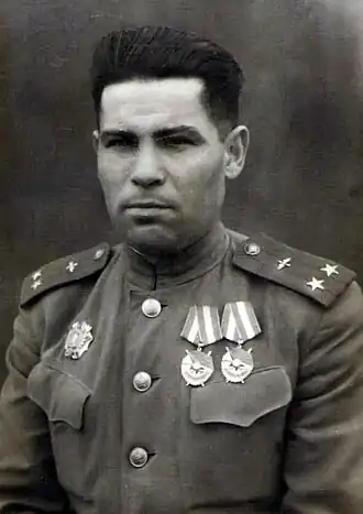 - 1 2 Награждён в соответствии с Указом Президиума Верховного Совета СССР от 04.06.1944 «О награждении орденами и медалями за выслугу лет в Красной Армии»