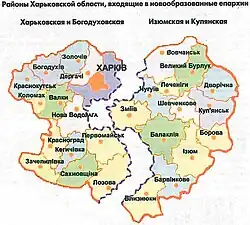 8 мая 2012 года решением Синода УПЦ из состава Харьковской епархии была выделена Изюмская и Купянская епархия в составе 13 районов Харьковской области. В составе Харьковской епархии остались Харьков и 14 районов[6].