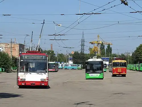 Троллейбусное депо № 3. Расположено на улице П. Свистуна, 2б (р-н ст.м. им. А. Масельского, Индустриальный район). Директор: А. В. Курочка