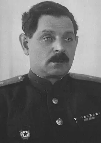 - ↑ Указ Президиума ВС СССР № 220/272 от 21.02.1945, за выслугу (25) лет в электронном банке документов «Подвиг народа» (архивные материалы ГАРФ. Ф. Р7523. Оп. 4. Д. 338. Л. 192.).