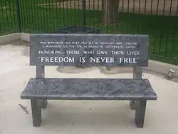 | Экспозиция в музее «Boomtown Revisited» (помпа начала XX века для подачи бензина) | Рассвет в округе Хатчинсон | Мемориальная скамья в парке Боргера (текст гласит «Почтим того кто отдал жизнь. Свобода никогда не обходится бесплатно») |