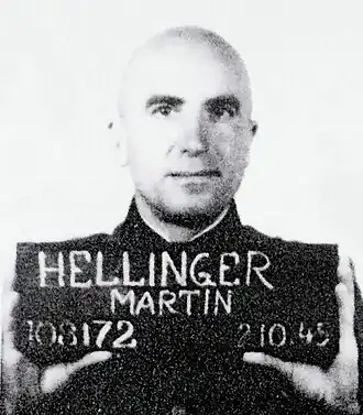 1 октября 1945 года попал в британский плен[3]. На первом Равенсбрюкском процессе дал показания о том, что лично вырывал золотые коронки изо рта убитых заключенных. Кроме того, присутствовал при проведении казней. Сам Хеллингер ссылался на необходимость исполнения приказов[3]. 3 февраля 1947 года британским военным трибуналом был приговорён к 15 годам заключения. Наказание отбывал в тюрьме в Верле. 14 мая 1955 года (по другим данным, 19 апреля 1954 года[3]) был освобождён досрочно за хорошее поведение[4]. После освобождения работал стоматологом в Гамбурге[1].