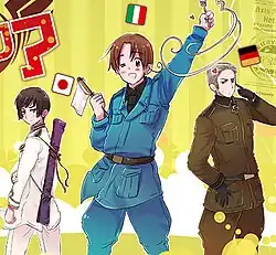 ![]() Обложка первого тома манги. Слева направо: Германия, Италия, Япония | |||