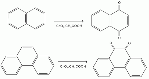 Общий метод синтеза хинонов — как моноциклических бензохинонов и их производных, так и полициклических конденсированных хинонов, причём если для окисления производных бензола требуется, как правило, наличие электродонорных заместителей, активирующих ароматическое кольцо (например, гидрокси- или аминогрупп), то в случае полициклических ароматических углеводородов возможно и прямое окисление до соответствующих хинонов.