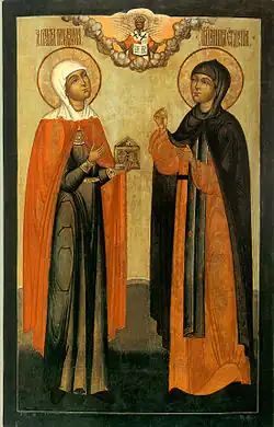 | Предполагаемое изображение Б. М. Хитрово. Фрагмент иконы Живоначальной Троицы с иконостаса Лютикова монастыря | |