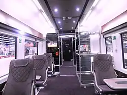 Поезда предлагают на выбор два класса проезда: экспресс-класс, соответствующий стандартному классу, и «бизнес»-класс, соответствующий первому классу. Оба класса имеют большие места для хранения багажа и бесплатный Wi-Fi[10]. Первый класс предлагает более широкие сиденья и стол у каждого места[11].