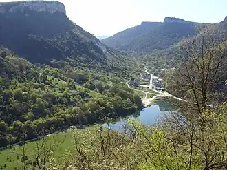 Это деревня между двух голых скал в лощине, по которой протекает живая вода, с одной мечетью, одной баней, со 100 мусульманскими домами, крытыми черепицей, с садами и виноградниками[49].