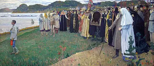 - ↑ Выставка «„Реквием“. К истории „Руси уходящей“» (2013, ГТГ). Аннотации к произведениям.