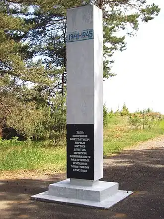 Надпись на памятнике в урочище Меречёвщина около Коссово