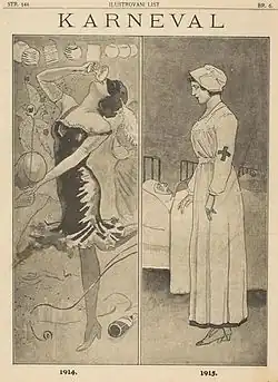26 июля в стране была объявлена частичная мобилизация. На следующий день был введён запрет на свободу собраний. После объявления войны (28 июля) в Загребе было проведено множество акций протеста. Поскольку последний конфликт, в котором участвовала Хорватия, был в 1878 году, и поскольку во всей Европе почти за пятьдесят лет мира и относительной стабильности война была забыта как явление — по стране прокатилась волна шока. Цены на продовольствие повысились сразу — поэтому правительство решилось их заморозить. Все ассоциации граждан, кроме связанных с пожаротушением и благотворительностью, были закрыты.