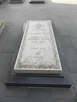 Его тело было захоронено в притворе церкви Святой Гаяне. В сентябре 1996 года, останки были перенесены во двор Кафедрального собора Эчмиадзина.