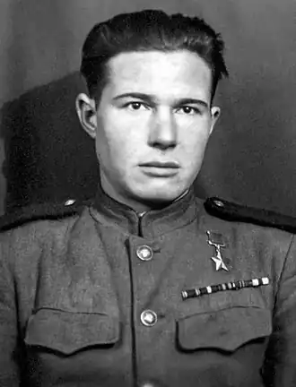 Звание Героя Советского Союза с вручением ордена Ленина и медали «Золотая Звезда» присвоено 24 марта 1945 года «за отвагу и мужество, проявленные при разведке переправ через реки Джевичка и Пилица во время боёв по освобождению Польши».