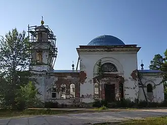 Своеобразие храму придает ярусная колокольня, возведенная над притвором. Первый ярус представлен сильно вытянутым четвериком, грани которого прорезаны полуциркульными арками. Второй — выполнен в виде ротонды.