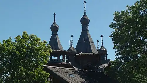Деревянный храм построен в 1997 году по проекту архитектора В. В. Иванова в стиле северного русского зодчества XVII века. Основной престол освящён во имя Георгия Победоносца.