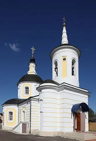 Нынешняя церковь во имя Казанской иконы Божией Матери, каменная, в стиле русского барокко, по типу ярусного центрического храма, была построена в 1763 году на средства помещицы Марии Петровны Яковлевой, а, в 1783 году, ею же построена колокольня «из кирпича, а крыша каменная».