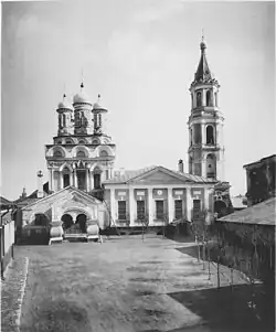 В 1775 году к храму с запада была пристроена трапезная в стиле классицизма, сильно исказившая первоначальный облик церкви. Храм горел во время пожара 1812 года, после него был восстановлен и освящён заново. Вместо выгоревшей древней трапезной в 1817—1823 годах была отстроена новая в классицистическом стиле, в ней были устроены два придела — Николая Чудотворца и преподобного Феодосия Киновиарха[1]. Старая колокольня была разобрана «за ветхостью» между 1815 и 1820 годами[2] (двухэтажные палаты под колокольней простояли до 1871 года, сейчас на их месте находится дом причта). В 1853—1854 годах у западной стены трапезной храма была построена новая колокольня по проекту архитектора Николая Дмитриева[2].
