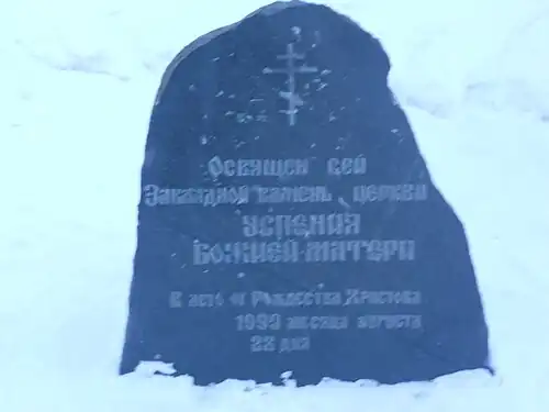 По типу храм — деревянная шатровая церковь. Изначально задумывалось строить каменный Успенский храм, в конце 1990-х был поставлен закладной камень, но из-за нехватки средств строительство было отменено.