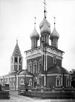 Каменная церковь построена на месте деревянной в 1680 году (освящена в 1690)[3] (по другим данным, в 1701[2]) в стиле московского барокко. В 1701 году построен придел великомученицы Екатерины. В середине XVIII века на левой стороне трапезной выгородили северный придел в честь апостола Иакова, перенесённый в новую «прикладку» к трапезной при её расширении в конце 1880-х годов.[3]