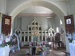 В интерьере храма использовались иконы XVII—XVIII веков: «Иоанн Златоуст», «Воскресение — Сошествие в ад», «Богоматерь Одигитрия», «Спас», деревянная скульптура XIX века «Распятие».