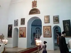Алтарь сложной формы. Он состоит из апсиды с двумя помещениями. Стены и купол были расписаны фресками XIX века (не сохранились).
