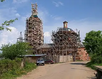 Трёхпрестольный храм в форме «корабль» построен в 1836 году в стиле зрелого классицизма. Состоит из четверика с куполом, трапезной и колокольни. Имеет статус памятника архитектуры федерального значения.