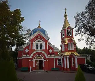 Храм построен из красного кирпича в неовизантийском стиле, одноэтажный, однокупольный. Длина здания составляет 22 метра, ширина — 20 метров, высота — около 20 метров, диаметр купола — 6 метров, толщина стен — до 1 метра. Алтарь обращён на юго-восток[1].