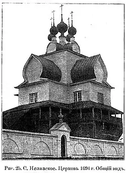 Успенская церковь в Нелазском построена в 1694 году и до середины XIX века сохраняла первоначальный облик: купола и крыша были покрыты лемехом, крыльцо было двухвсходным, а галерея — открытой. Внешние углы рублены «в обло» с остатком, внутренние — «в лапу»[6].