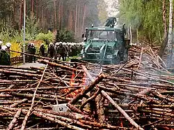 - ↑ Bereits 15 Stunden Verspätung durch Blockaden: Betonpyramiden machen Polizei zu schaffen. Hamburger Abendblatt. 10 ноября 2008. Архивировано 1 декабря 2011. Дата обращения: 4 июня 2011.