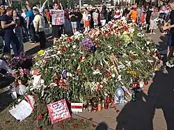 Несколько сот человек собралось в районе гостиниц «Планета»[129] и «Юбилейная». Также люди собирались в районах станций метро «Фрунзенская», «Грушевка», «Немиги»[130], в Уручье. Наибольшие скопления протестующих собрались у станции метро «Пушкинская» и универсама «Рига», где протесты продолжались и после полуночи и где протестующие возвели баррикады[131].