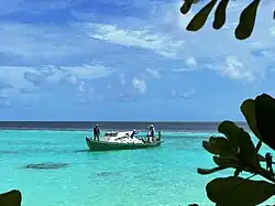 Дони - традиционное мальдивское судно у берега Хувахендху