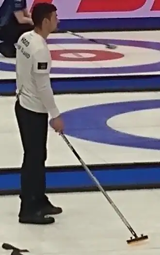 В «классическом» кёрлинге (команда из четырёх человек одного пола) играет на позиции четвёртого. Скип команды.