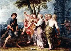 Ян ван ден Хукке — автор ряда монументальных картин, созданных под влиянием Рубенса и А. ван Дейка («Триумф Давида», 1635). Писал картины на библейские, мифологические и аллегорические сюжеты, алтарных картин для церквей Фландрии, а также полотен, изображающих современные ему события, портреты, батальные сцена и рисунки для гобеленов.