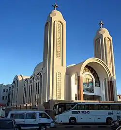 Панорама города, Церковь святого Шенуте, Пляж отеля Marriott, Мечеть аль-Мина | ||||||
