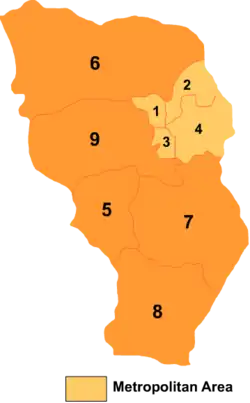 | 6 | Уезд Учуань | 武川县 | Wǔchuān xiàn | 170 000 | 4885 | 35 | |