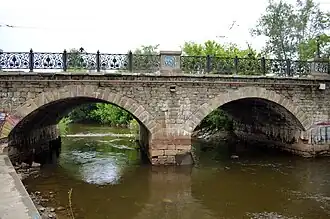 В 1847 году, когда рассматривался вопрос о ремонте ветхого моста, архитектор Р. Н. Спиринг предлагал перестроить мост в камне, но министерство финансов отклонило проект и предложило вновь сделать деревянный мост. В 1856—1858 годах мост был восстановлен в дереве[2]. В 1889—1890 годах по проекту городского архитектора С. С. Козлова и Р. И. Карвовского[3] построен трёхпролётный каменный мост[4][5][6][7].