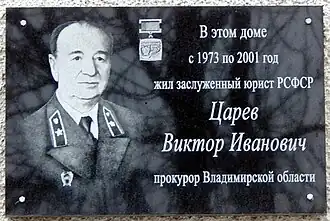 - ↑ Никита Тарбеев, Александр Чунаев. На доме, в котором жил прокурор области Виктор Царев, установлена мемориальная доска. vladtv.ru. ГТРК «Владимир» (19 января 2015). Дата обращения: 7 февраля 2024. Архивировано 7 февраля 2024 года.