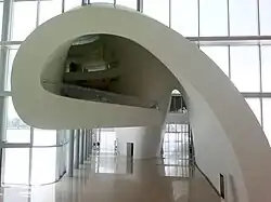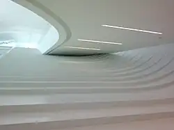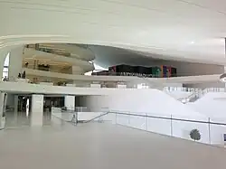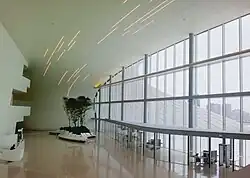 Площадь здания составляет 57519 м²(5.75га)[5]. В проекте здания культурного центра практически не было использовано прямых линий[6]. Само здание по форме представляет собой волнообразное устремление ввысь и плавное слияние с землёй. Подобная структура олицетворяет не только постмодернистский стиль архитектуры, но и продолжительность и бесконечность. Линии же на здании символизируют связь прошлого с будущим[6].