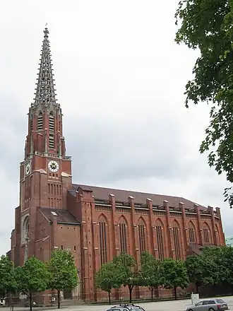 После того, как в 1813 году Ау стал пригородом Мюнхена у городских властей возникла идея создания представительной площади, которая соответствовала бы идеалам городского планирования. Король Баварии Людвиг I поручил архитектору Йозефу Даниэлю Ольмюллеру (Joseph Daniel Ohlmüller) из Бамберга построить приходскую церковь «в стиле немецкой готики». Ольмюллер, являвшийся учеником Карла фон Фишера, приобрел практический опыт в ходе работ в Бамбергском соборе. Неоготический стиль Ольмюллера демонстрировал различные модели трехнефного зального храма: как германские, так и французские. Здание было построено из кирпича и украшено элементами из известняка. Окна храма были выполнены по эскизам Йозефа Антона Фишера и Иоганна Шраудольфа.