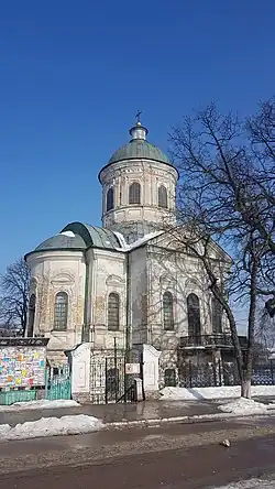Каменная, однокупольная, крестообразная в плане с короткими раменами (прямоугольные объёмы, расположенные по бокам от центральной части здания, распространённый элемент архитектуры украинского барокко), к которым с запада и востока примыкают равновысокие экседры (ниши, завершающиеся полукуполами). В стилевом отношении относится к переходному этапу от позднего украинского барокко к классицизму. Вход с западной стороны, к нему ведут ступени на второй этаж. Второй этаж южной стороны имеет балкон на опорах. В интерьере частично сохранилась масляная роспись XVIII и XIX веков.
