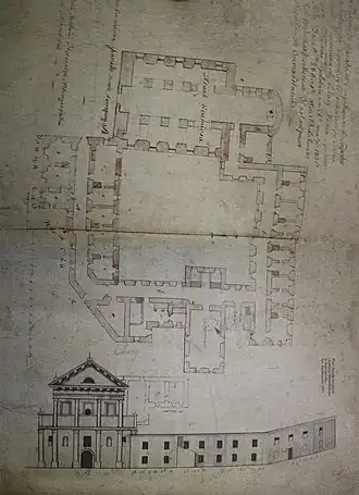 К костёлу примыкал, образуя внутренний дворик-клауструм, П-образный в плане каменный монастырь, где кроме 30 келий монахов находились школьные классы. Школа при монастыре была основана в 1794 году, имела 6 классов; 6-7 профессоров во главе с префектом преподавали здесь арифметику, историю, математику, моральные науки, языки, право, физику и др. В 1807—15 годах здесь обучались Адам Мицкевич (в 1904 году в его честь на стене костёла была помещена мемориальная плита, не сохранилась) и Ян Чечот. Большинство учеников школы жило в монастырской бурсе. В комплекс монастыря также входили каменная конюшня, амбар и ряд хозяйственных построек[4].