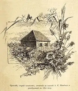 До 1820 года над могилой Матвеева, его жены и сына Андрея сначала стоял памятник в виде избы с высокой тесовой крышей. В 1820—1821 годах по проекту архитектора А. Ф. Элькинского на его месте построили новый каменный памятник с двумя портиками и колоннами. Новый памятник был построен на средства графа Н. П. Румянцева (правнука А. С. Матвеева), владевшего здесь домом на углу с улицей Маросейкой.