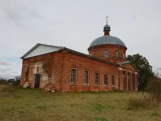 В 1849 году тот же Полибин принял активное участие в строительстве каменной церкви с Казанским и Петропавловским приделами. Храм сложен из кирпича с деталями из белого камня. Здание внушительное по размерам, выполнено в стиле позднего классицизма, тип постройки — «ротонда на четверике». Алтарь с колокольней соединён обширной трапезной, шестиколонные портики украшают фасад строения.