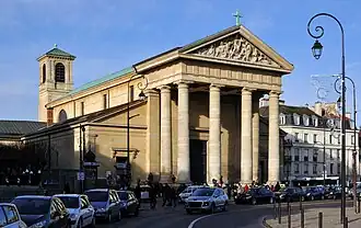 Построенная в неоклассическом стиле, вдохновлённом раннехристианскими базиликами, церковь Святого Германа привлекает внимание массивным порталом. Треугольный фронтон со скульптурной композицией Страшного суда поддерживается шестью дорическими колоннами. Вопреки традиции, здание ориентировано не с запада на восток, а обращено входом к Сен-Жерменскому дворцу.