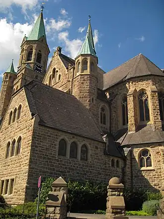 Исследователи полагали, что некоторые фрагменты предыдущей церкви, стоявшей на месте современного здания и разрушенной в 1914 году, были построены ранее XIV века. Закладка первого камня в основание современного церковного здания, постройка которого была завершена в 1917 году, состоялась 12 июля 1914 года; при этом строительные работы были отчасти отложены в связи с началом Первой мировой войны. Проект здания в «рейнской традиции» был выполнен ахенским архитектором Йозефом Бухкремером (Joseph Buchkremer, 1864—1949). В итоге, церковь была освящена епископом Падерборна Генрихом Хелингом фон Лансенауэром (Heinrich Haehling von Lanzenauer) 11 ноября 1917 года[1].