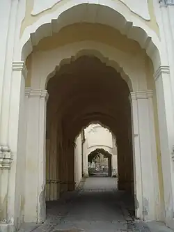 Монументальный трёхъярусный арочный проезд сооружён архитектором Иоганном Кристофом Глаубицем в 1761 году. Пышный волнистый фасад ворот украшает сложная композиция пилястров и антаблементов волнистого профиля, членящих плоскости стен. Два волнистых антаблемента с извилистыми карнизами делят фасад на три яруса. В нижнем ярусе располагаются профилированные арочные проёмы. По бокам на пьедесталах стоят пилястры с коринфскими капителями, по три с каждой стороны.