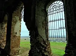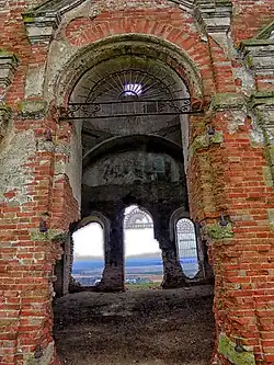 Колокольня снизу разделялась перегородками на коридор, ведущий в церковь и служебное помещение. Интерьер молитвенного зала гармонизирует с венчающим в его центре широким куполом. Храм был покрыт росписями, их фрагменты сохранились в алтарной апсиде и в центре на поддерживающих пандативах. Перед северным и южным входами были широкие четырехколонные портики дорического ордера, гармонирующие с расположенными по сторонам в дверных и оконных проемах пилястрами.