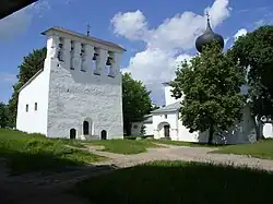 Churches of the Pskov School of Architecture. Church of Dormition s Paromenya (near the ferry) with a belfry, 1521 (Храмы псковской архитектурной школы. Церковь Успения с Пароменья со звонницей) |